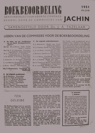 Terecht deed Prof. Grasheide in "De Heraut" de vraag: "Is Jachin's Boekbeoordeeling wel voldoende bekend?" Niet alleen aan het Zondagsschoolpersoneel, ook aan de onderwijzers der Christelijke dagschool kan zij uitnemende diensten bewijzen.