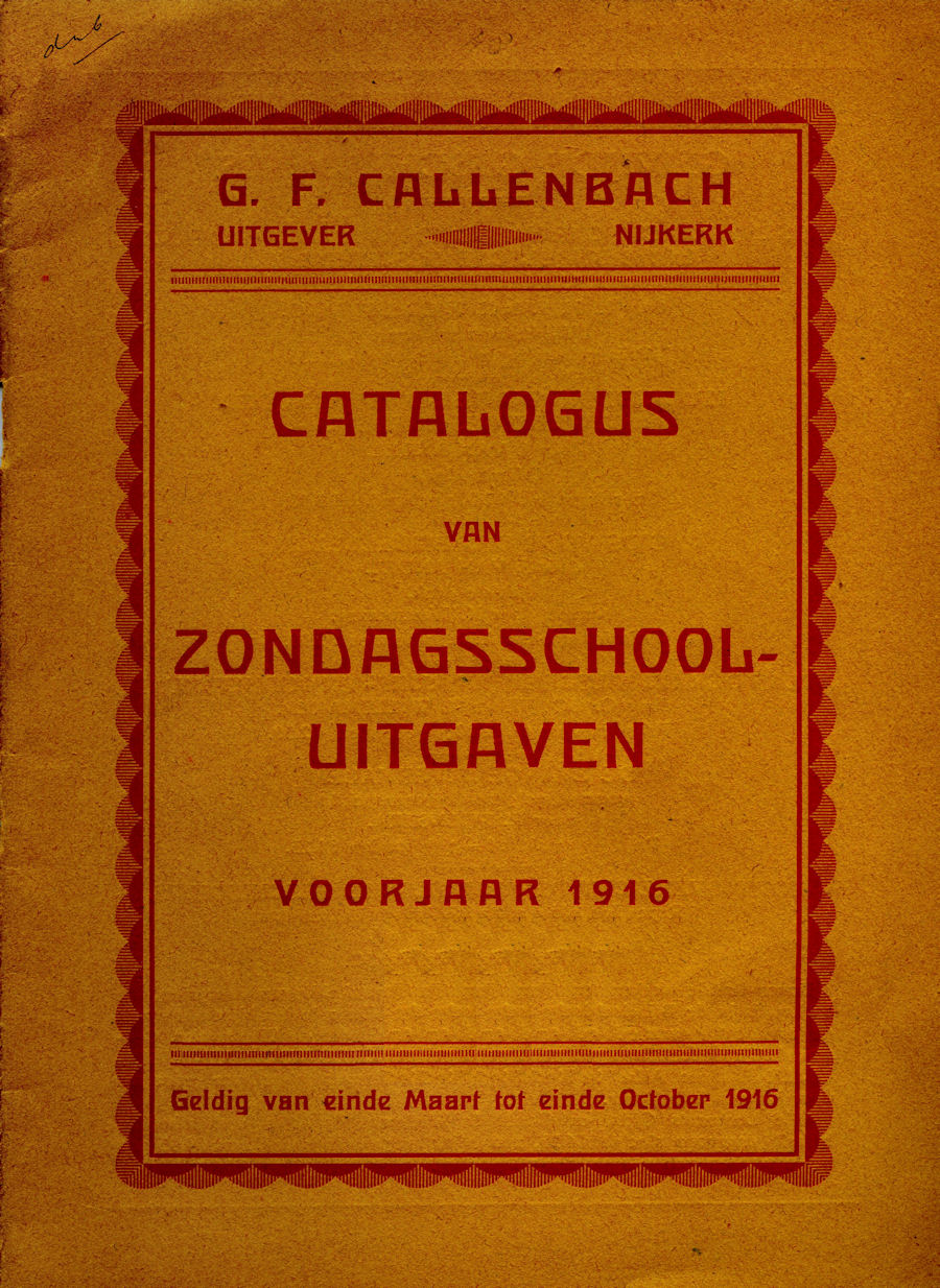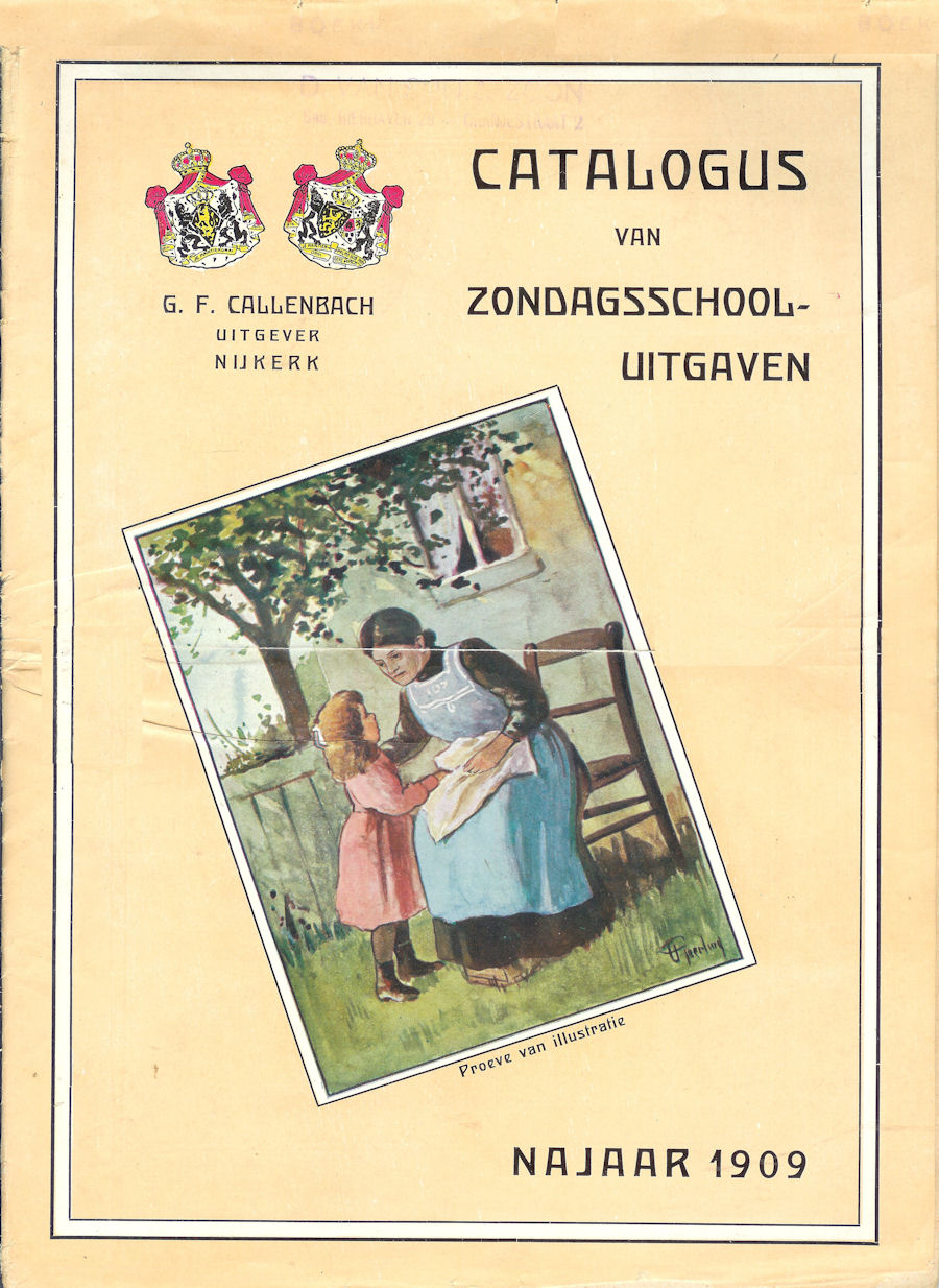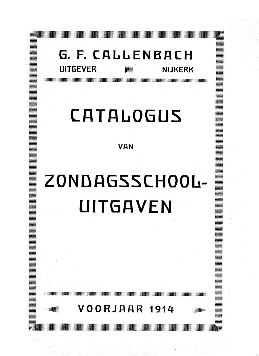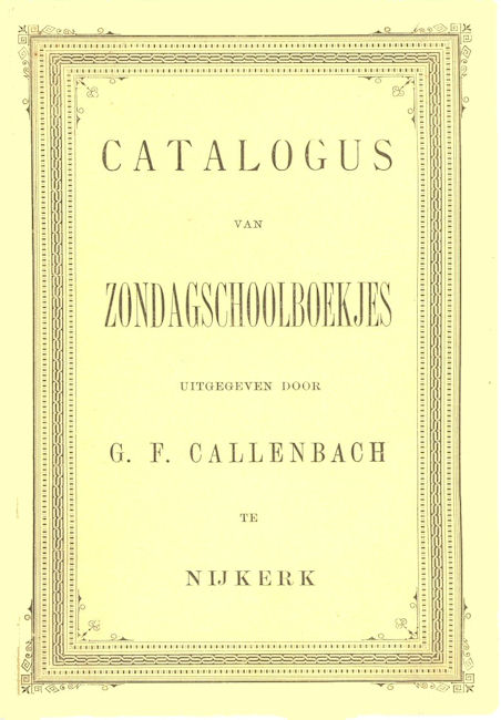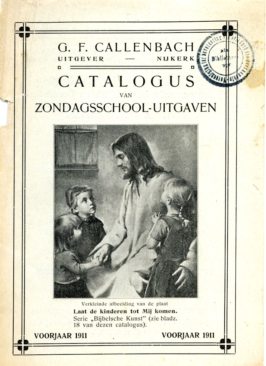 Van een aantal uitgevers van zondagsschoolboekjes, zoals Callenbach, Meinema, Milborn, Voorhoeve, zijn hier catalogi opgenomen. Ze vormen een bron van informatie over welke boeken er verschenen zijn en wanneer. Alle relevante informatie eruit is verwerkt op deze website. Bij het LM, het Letterkundig Museum, berust een groot deel van het archief van de uitgever Meinema, met name catalogi, brochures en originelen van illustraties. Ook bij het HDC, het Historisch DocumentatieCentrum aan de VU te Amsterdam berust een deel van het Meinema-archief waaronder ook catalogi. Door de welwillende medewerking van Stichting Oud Nijkerk zijn er een zeer groot aantal catalogi van uitgeverij Callenbach opgenomen kunnen worden.