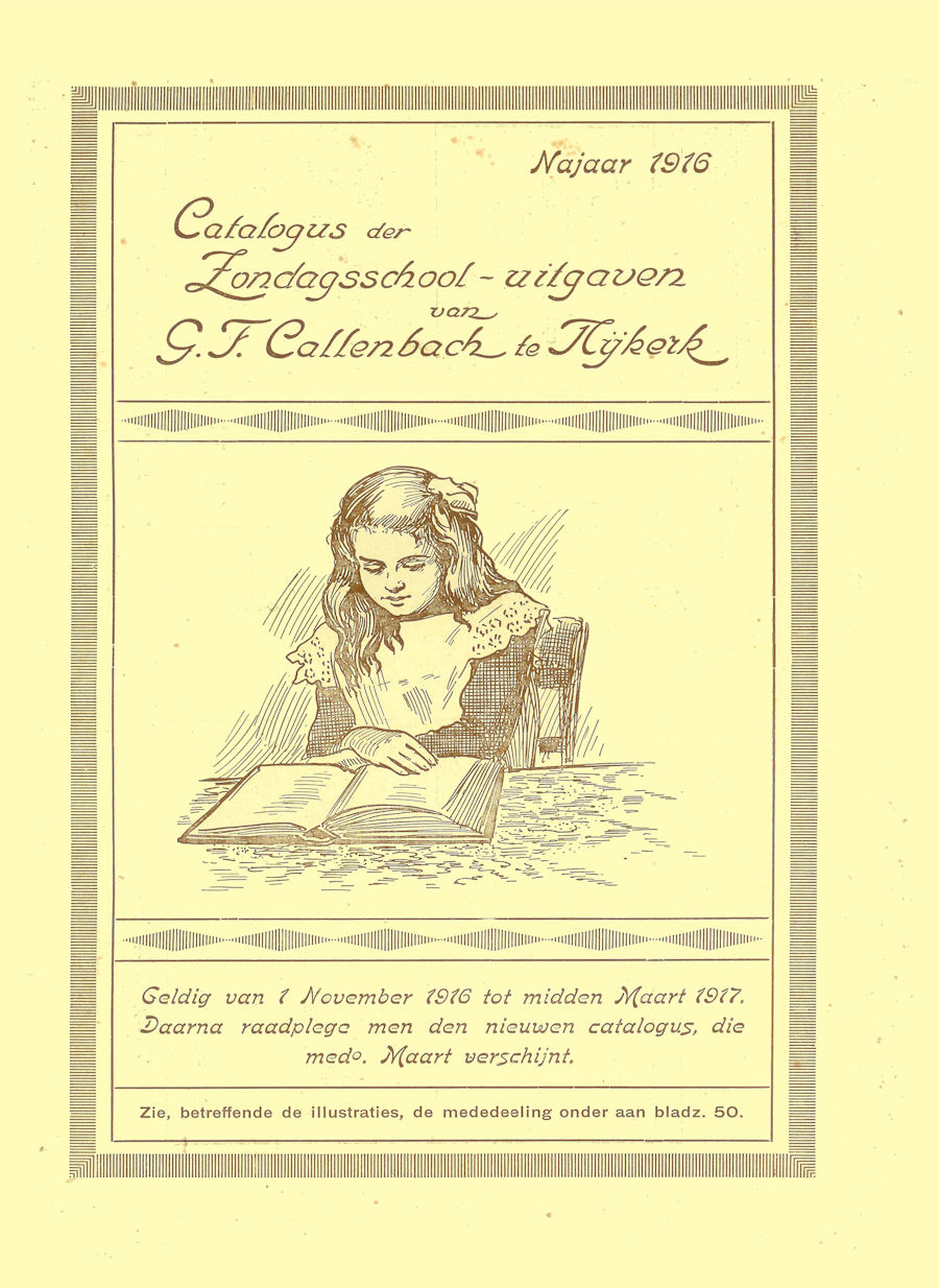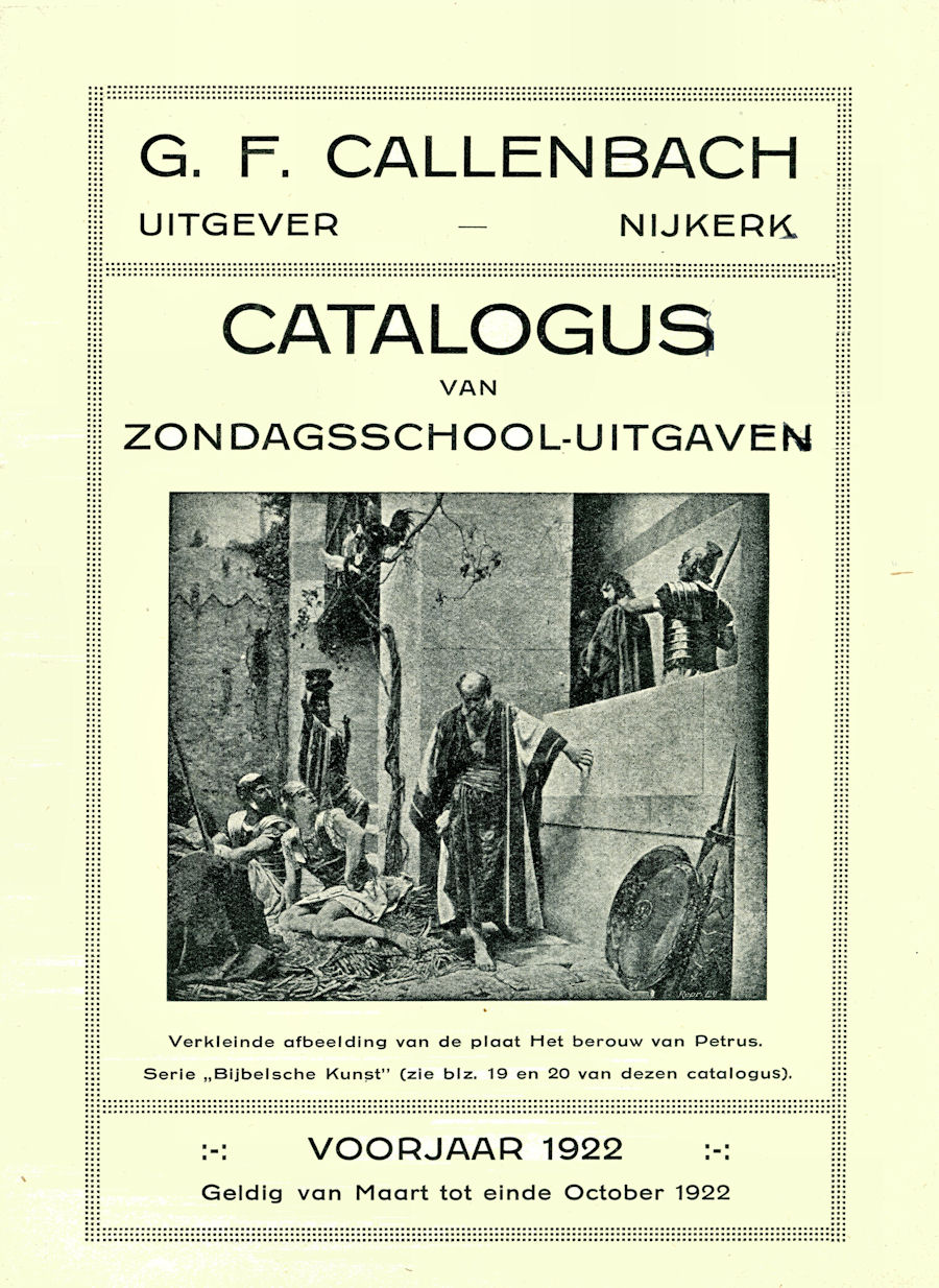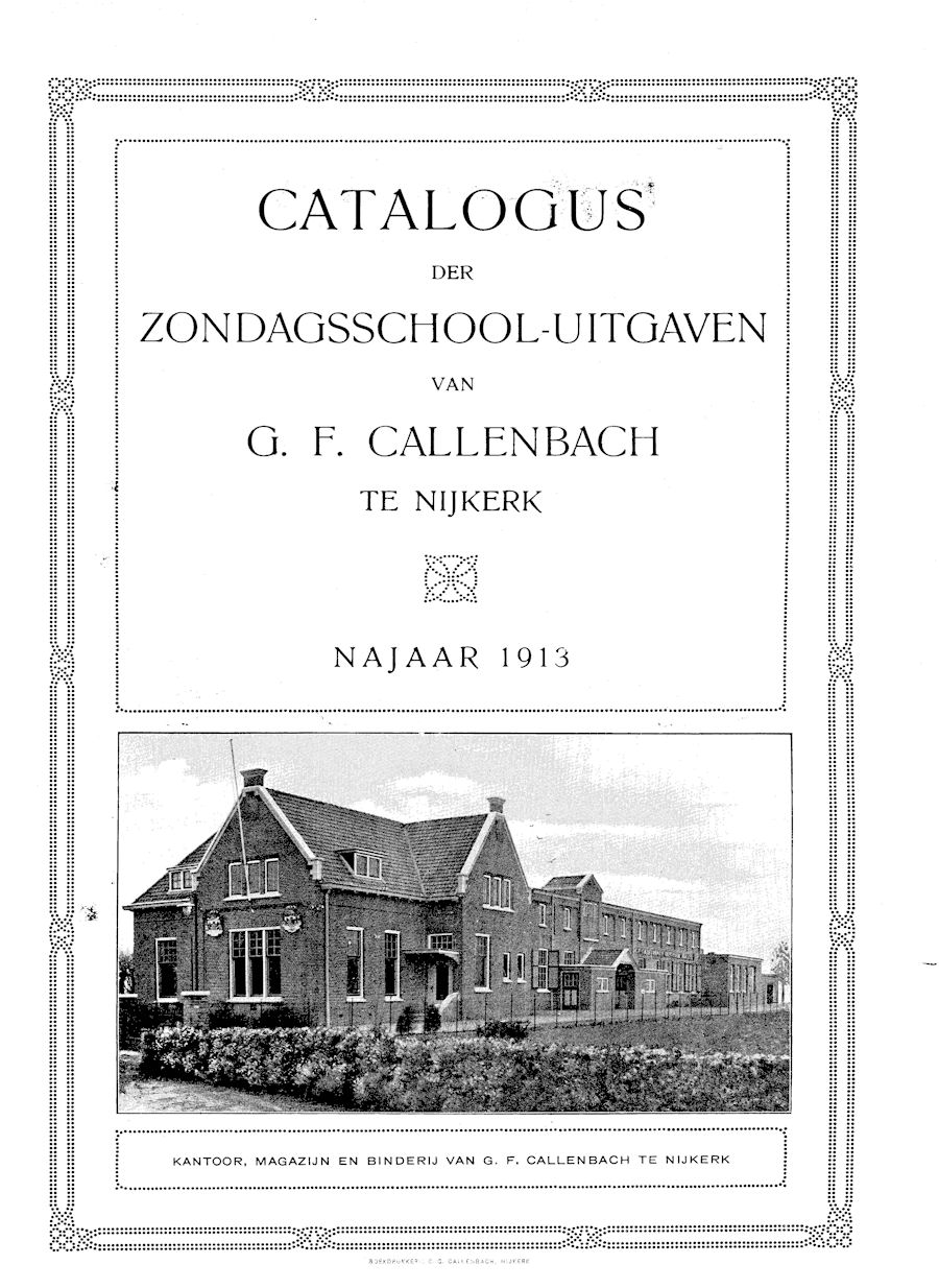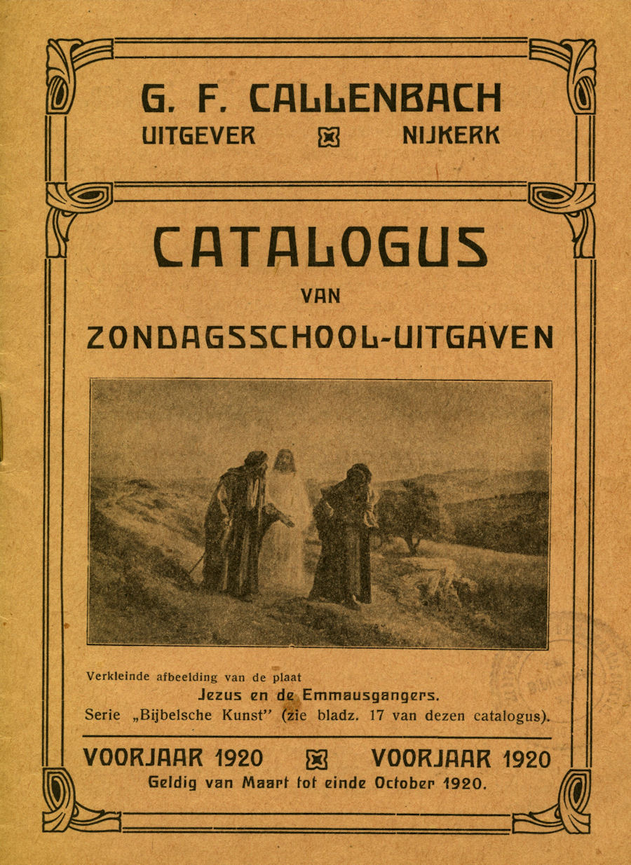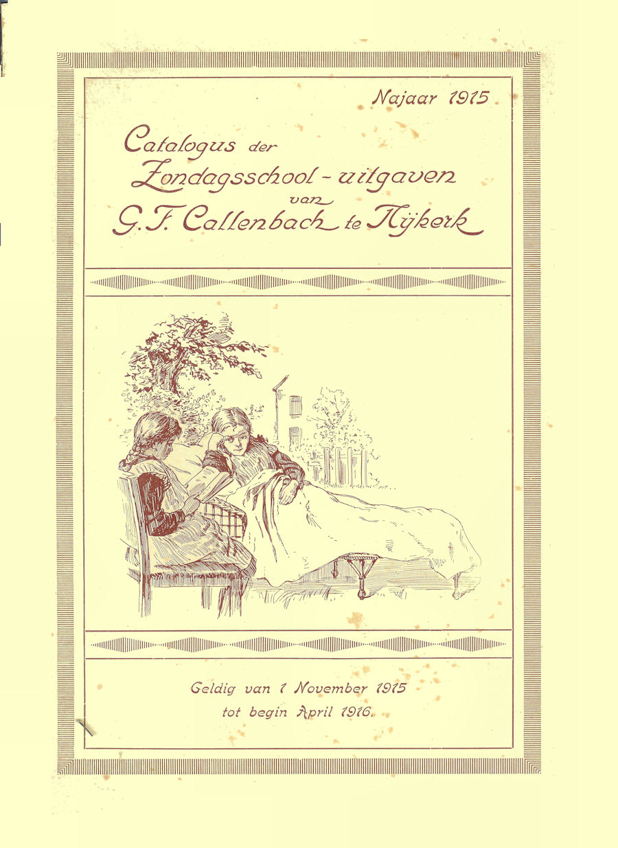 Van een aantal uitgevers van zondagsschoolboekjes, zoals Callenbach, Meinema, Milborn, Voorhoeve, zijn hier catalogi opgenomen. Ze vormen een bron van informatie over welke boeken er verschenen zijn en wanneer. Alle relevante informatie eruit is verwerkt op deze website. Bij het LM, het Letterkundig Museum, berust een groot deel van het archief van de uitgever Meinema, met name catalogi, brochures en originelen van illustraties. Ook bij het HDC, het Historisch DocumentatieCentrum aan de VU te Amsterdam berust een deel van het Meinema-archief waaronder ook catalogi. Door de welwillende medewerking van Stichting Oud Nijkerk zijn er een zeer groot aantal catalogi van uitgeverij Callenbach opgenomen kunnen worden.