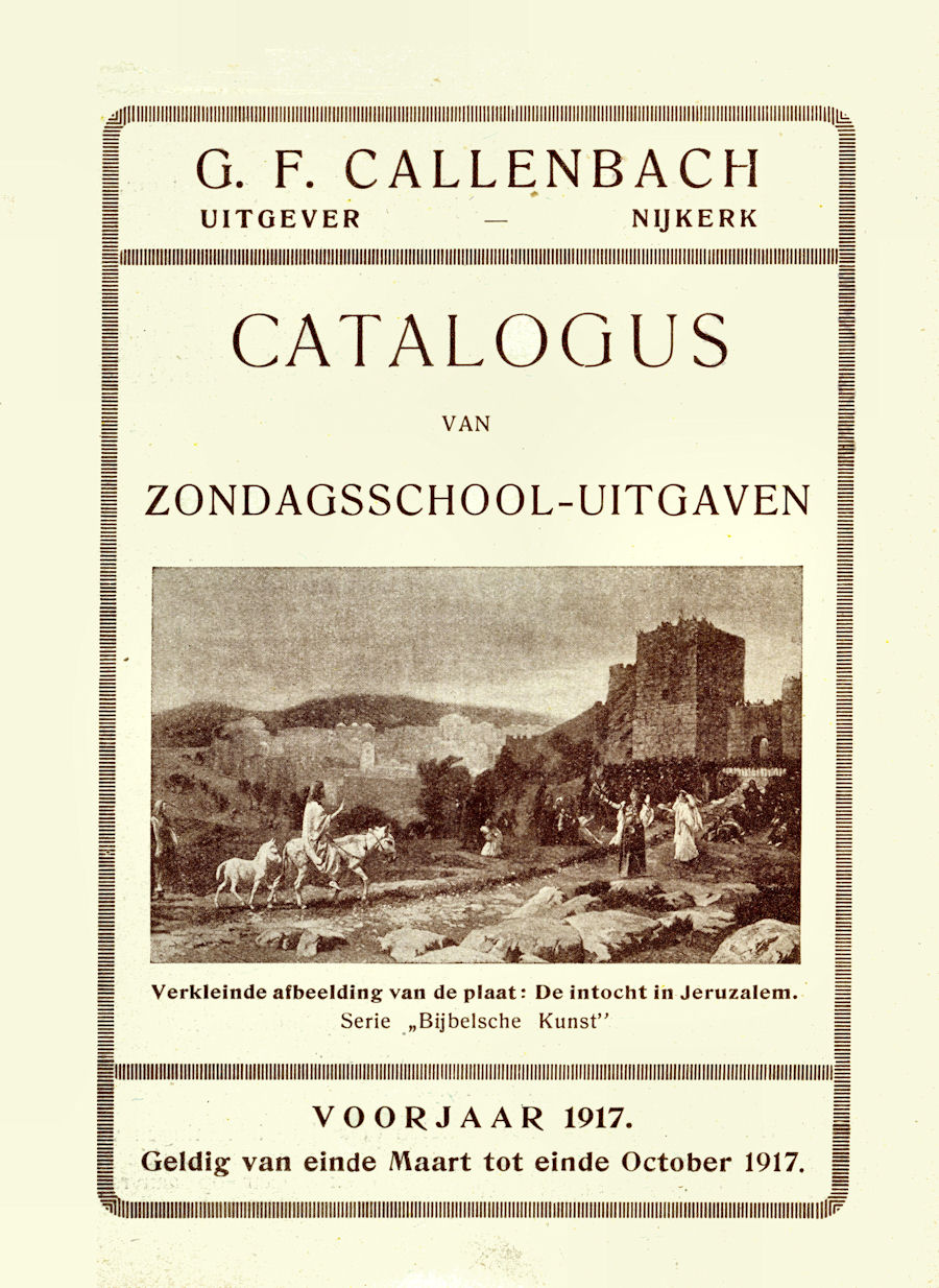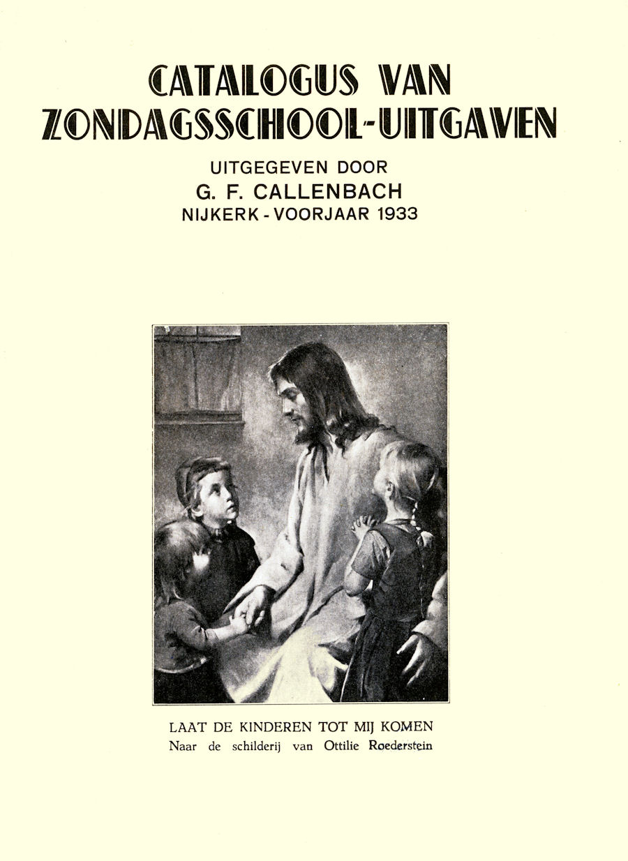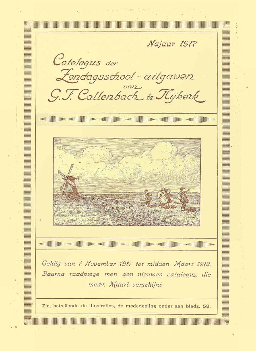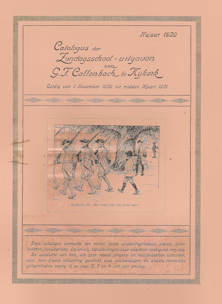 Van een aantal uitgevers van zondagsschoolboekjes, zoals Callenbach, Meinema, Milborn, Voorhoeve, zijn hier catalogi opgenomen. Ze vormen een bron van informatie over welke boeken er verschenen zijn en wanneer. Alle relevante informatie eruit is verwerkt op deze website. Bij het LM, het Letterkundig Museum, berust een groot deel van het archief van de uitgever Meinema, met name catalogi, brochures en originelen van illustraties. Ook bij het HDC, het Historisch DocumentatieCentrum aan de VU te Amsterdam berust een deel van het Meinema-archief waaronder ook catalogi. Door de welwillende medewerking van Stichting Oud Nijkerk zijn er een zeer groot aantal catalogi van uitgeverij Callenbach opgenomen kunnen worden.