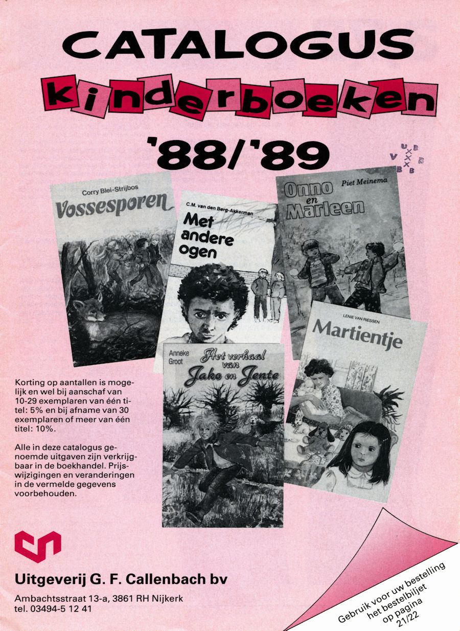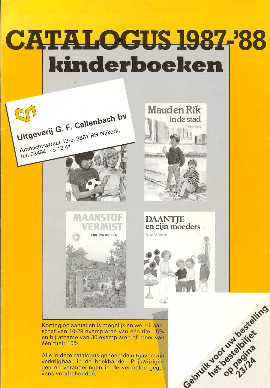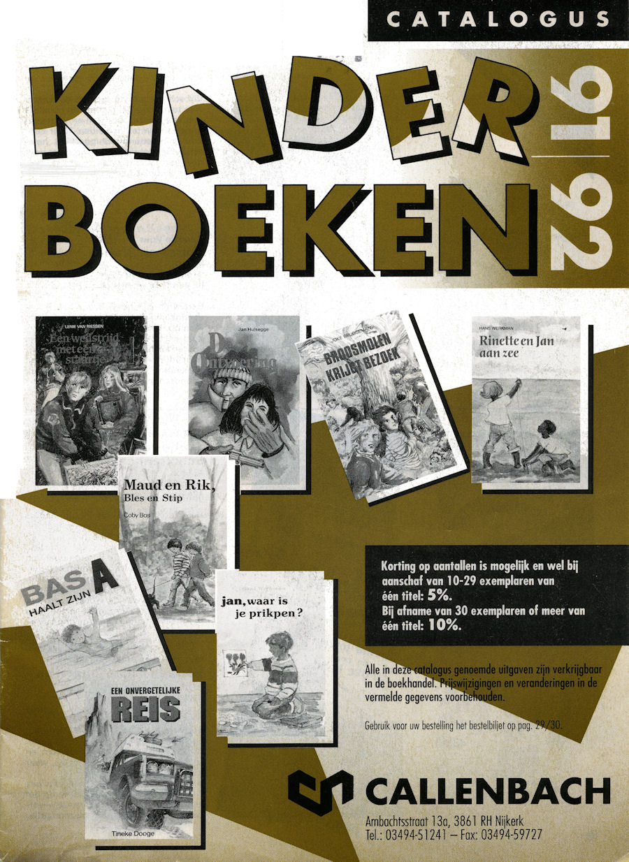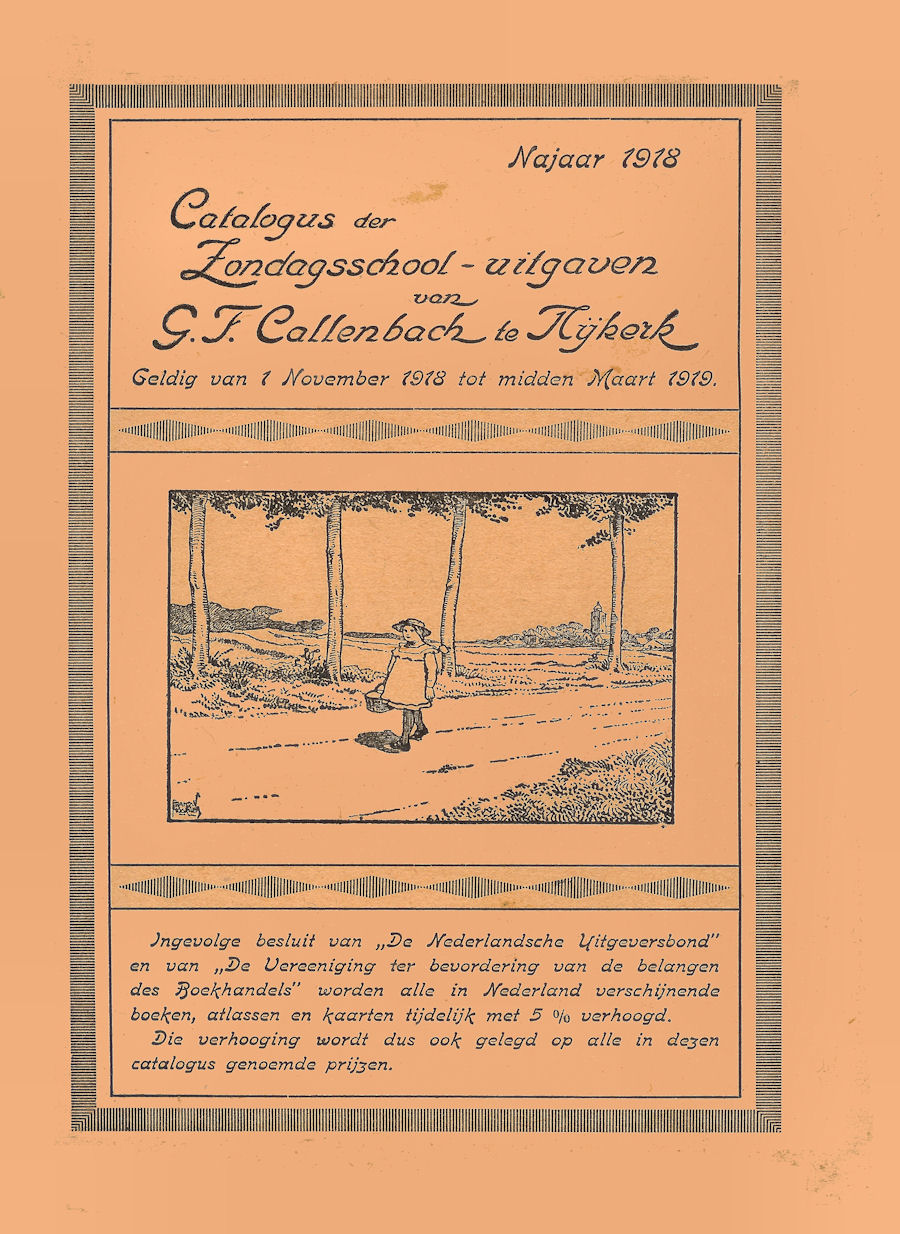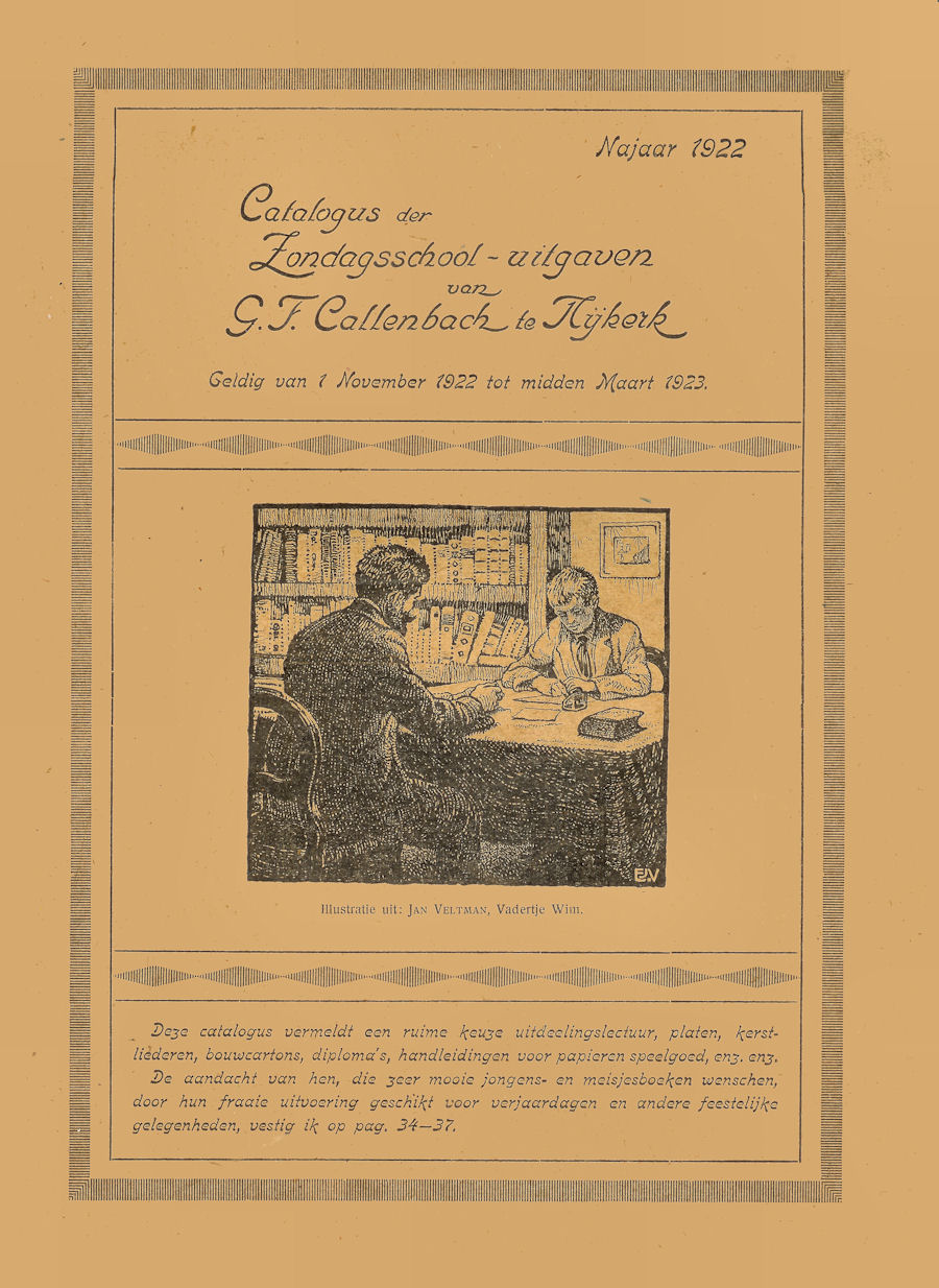 Van een aantal uitgevers van zondagsschoolboekjes, zoals Callenbach, Meinema, Milborn, Voorhoeve, zijn hier catalogi opgenomen. Ze vormen een bron van informatie over welke boeken er verschenen zijn en wanneer. Alle relevante informatie eruit is verwerkt op deze website. Bij het LM, het Letterkundig Museum, berust een groot deel van het archief van de uitgever Meinema, met name catalogi, brochures en originelen van illustraties. Ook bij het HDC, het Historisch DocumentatieCentrum aan de VU te Amsterdam berust een deel van het Meinema-archief waaronder ook catalogi. Door de welwillende medewerking van Stichting Oud Nijkerk zijn er een zeer groot aantal catalogi van uitgeverij Callenbach opgenomen kunnen worden.