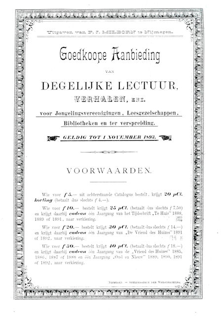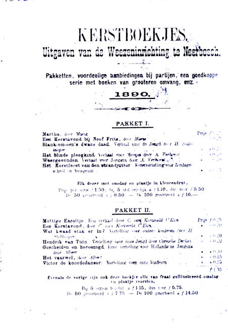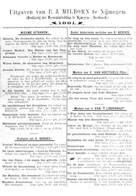Van een aantal uitgevers van zondagsschoolboekjes, zoals Callenbach, Meinema, Milborn, Voorhoeve, zijn hier catalogi opgenomen. Ze vormen een bron van informatie over welke boeken er verschenen zijn en wanneer. Alle relevante informatie eruit is verwerkt op deze website. Bij het LM, het Letterkundig Museum, berust een groot deel van het archief van de uitgever Meinema, met name catalogi, brochures en originelen van illustraties. Ook bij het HDC, het Historisch DocumentatieCentrum aan de VU te Amsterdam berust een deel van het Meinema-archief waaronder ook catalogi. Door de welwillende medewerking van Stichting Oud Nijkerk zijn er een zeer groot aantal catalogi van uitgeverij Callenbach opgenomen kunnen worden.