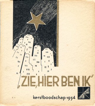 Zie, hier ben ik : kerstboodschap 1934, met verzen van Willem de Mérode, teekeningen van Karel Hoekendijk