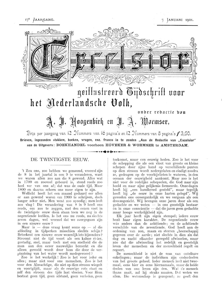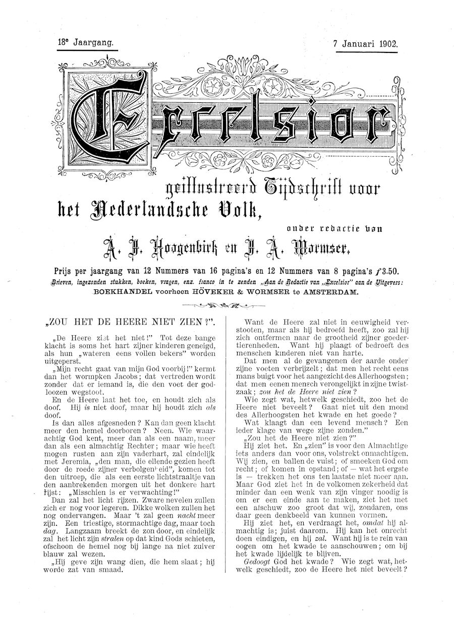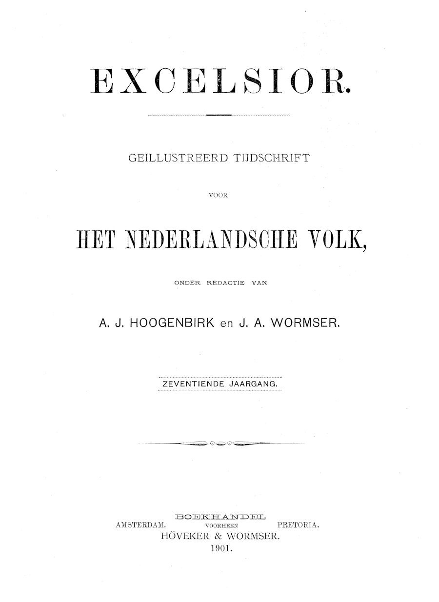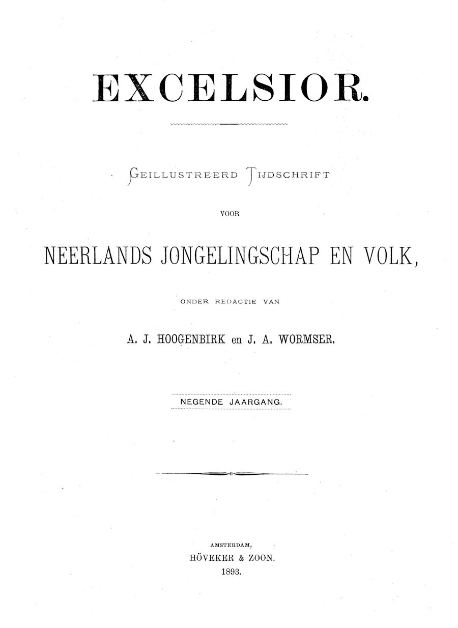 In 1885 verscheen het tijdschrift "Excelsior : geilllustreerd tijdschrift voor Neerlandsde jongelingschap en volk", uitgegeven door Hoveker & Zoon te Amsterdam.De redactie werd gevormd door A.J. Hoogenbork en J.A. Wormser. Het aantal medewerkers was beperkt. P.J. Kloppers verzorgde ook menig artikel.