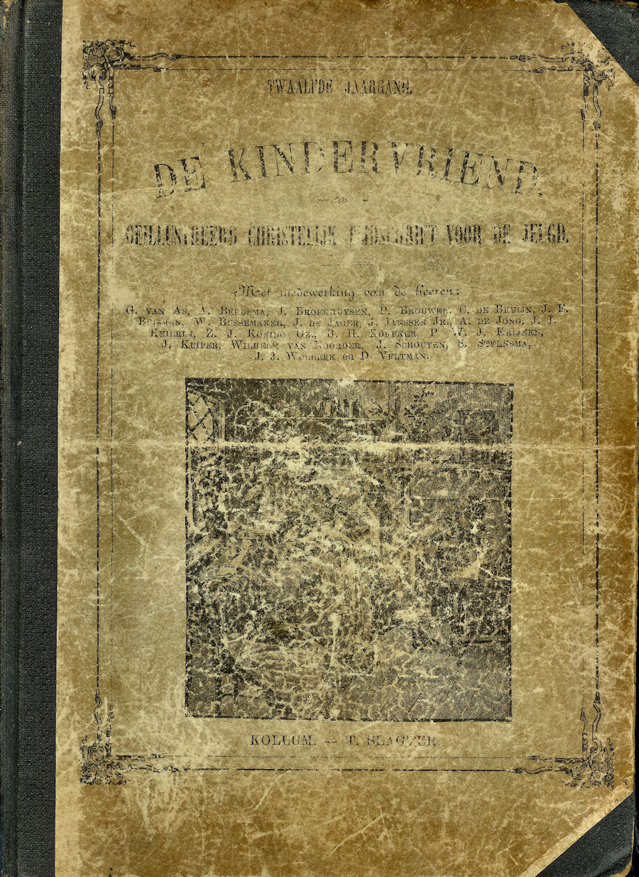De Kindervriend, geillustreerd Christelijk Tijdschrift voor de Jeugd, is een uitgave van T. Slagter te Kollum. Aan de 12de jaargang werkte schrijvers als J. Schouten, J. Kuiper, G. van As, P. Brouwer, J.F. Buisman, B.H. Korfker, A. de Jong, C. de Bruijn, C. Brouwer e.a. mee.