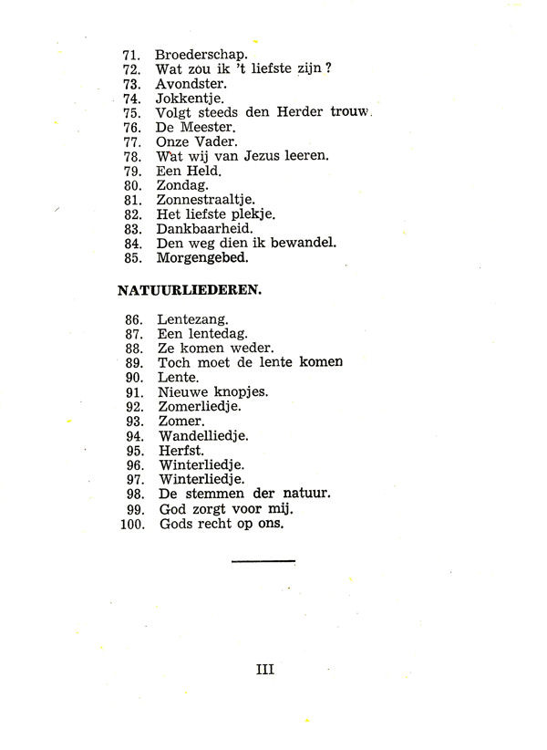 Op deze bladzijde wordt naast enkele grammofoonplaten met liedjes een overzicht gegeven van zangbundels in gebruik bij zondagsscholen. Op de eerste twee grammofoonplaten zijn typische zondagsschoolliedjes opgenomen. Dan volgt een plaat met zendingsliederen en tenslotte een plaat met evangelisatieliederen. Over de zending werd veel verteld op de zondagsschool. En de zondagsschool zelf was gericht op evangelisatie. Vandaar deze (beperkte) keuze.