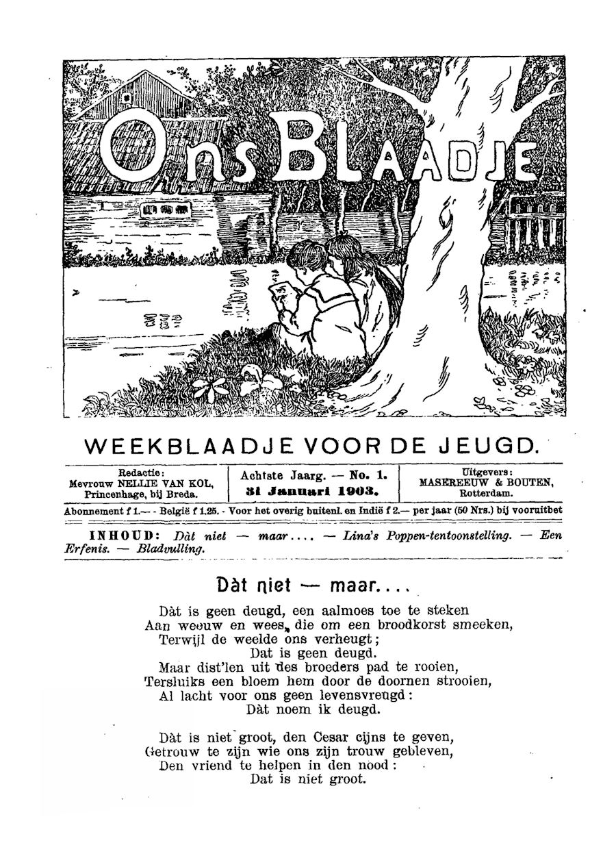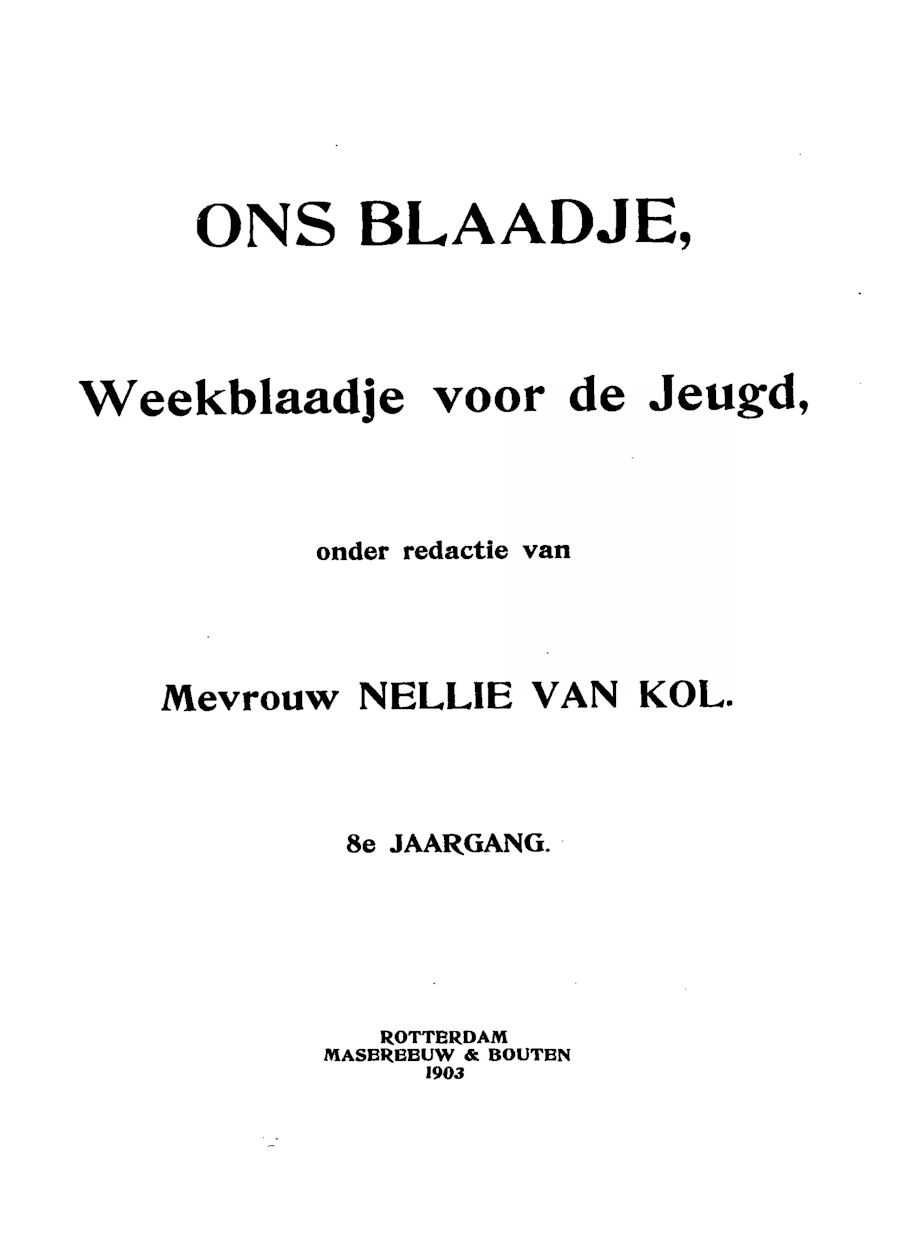 In 1896 verscheen jaargang 1 van het tijdschrift "Ons Blaadje", uitgegeven door Masereeuw & Bouten te Rotterdam. De redactie was in handen van Nellie van Kol.