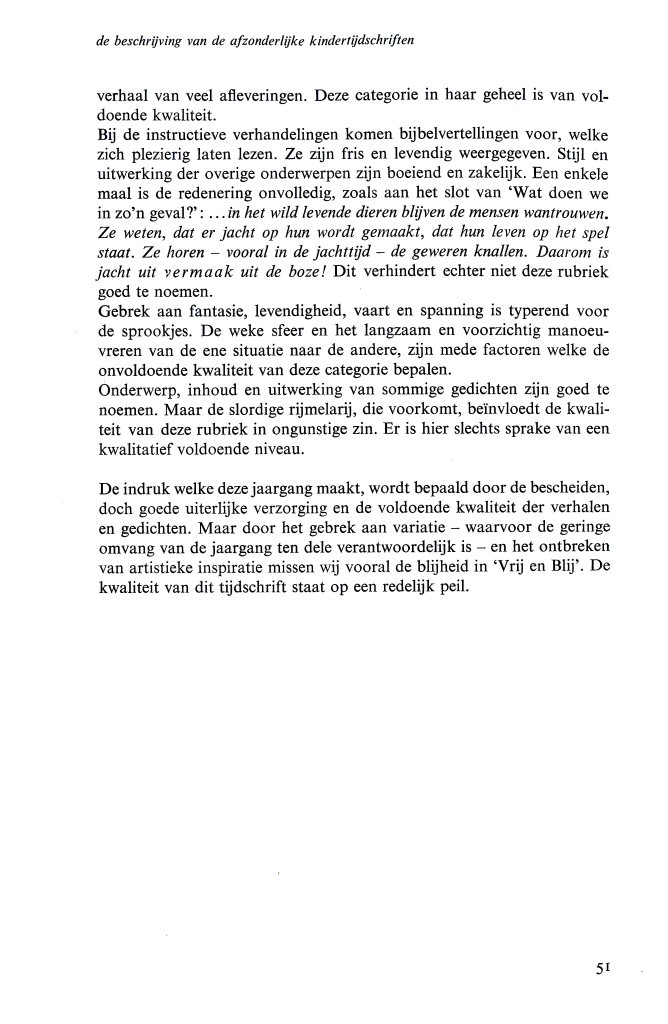Hier volgt een beoordeling, welke is opgenomen in W.H.J. Niemöller, Een onderzoek naar de kwaliteit van het nederlandse kindertijdschrift.