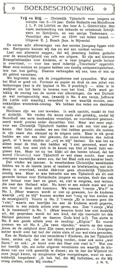 In het tijdschrift Timotheus, jaargang 23 (1917-1918) verscheen nevenstaande advertentie en onderstaande boekbeschouwing