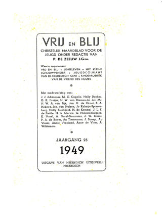 Een aantal schrijvers van zondagsschoolboekjes waren ook medewerker van het tijdschrift Vrij en Blij, Christelijk Maandblad voor de Jeugd, uitgegeven in de periode 1917-1964. Vanaf 1949 is hierin opgenomen Lenteleven, Het Kleine Schouwvenster, Jeugdcourant van de Neerbosch-Cent en de kinderrubriek van De Vriend des Huizes.