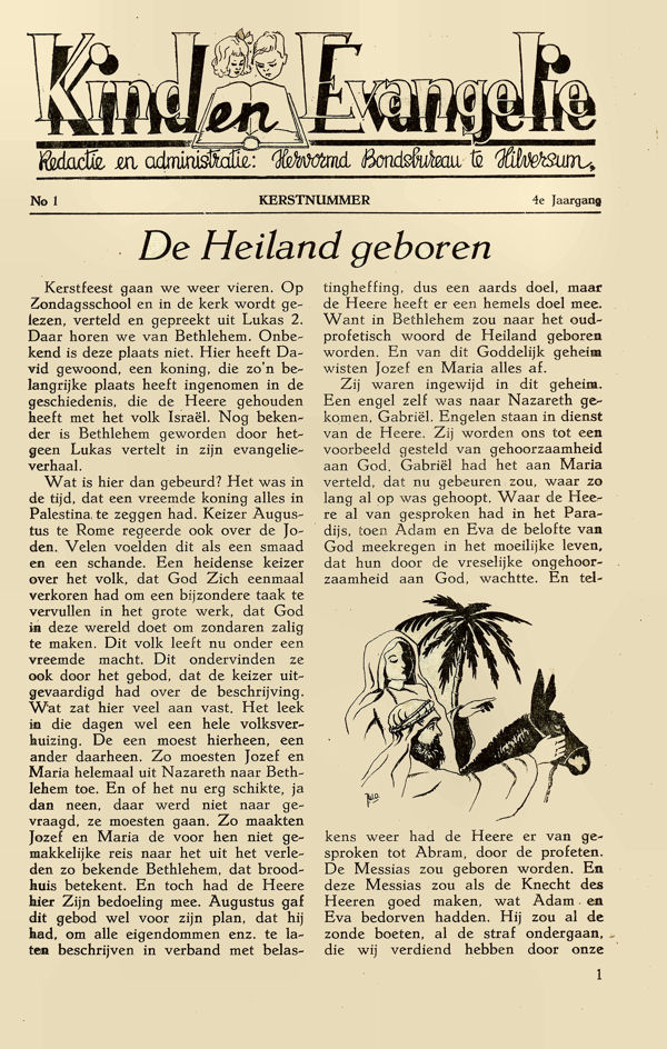 Hiernaast de eerste bladzijde uit Kind en Evangelie, jaargang 1950