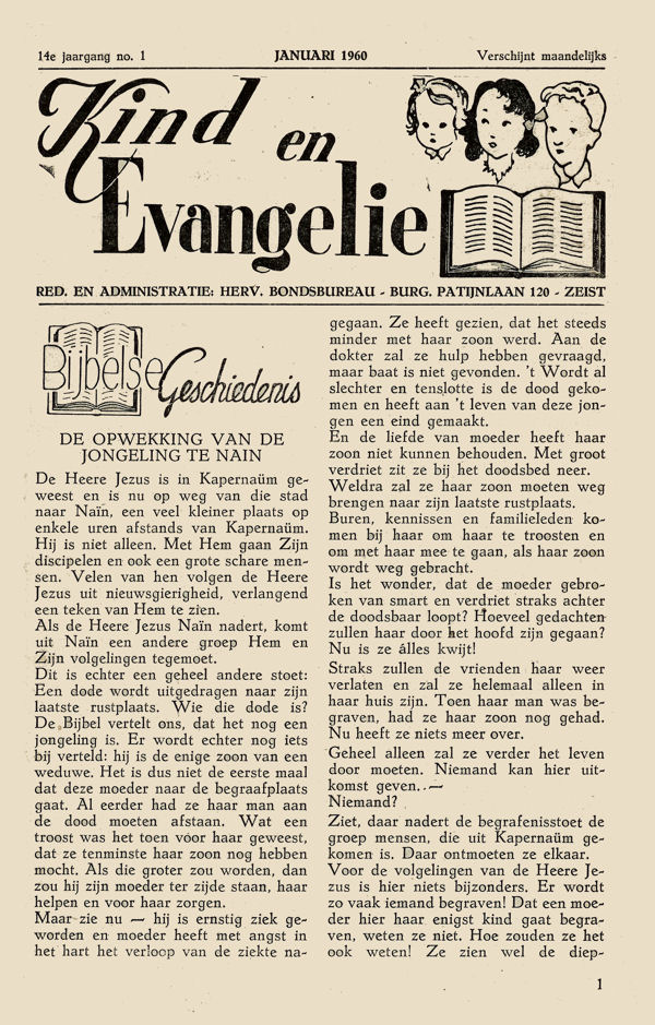 en de eerste bladzijde uit Kind en Evangelie, jaargang 1960