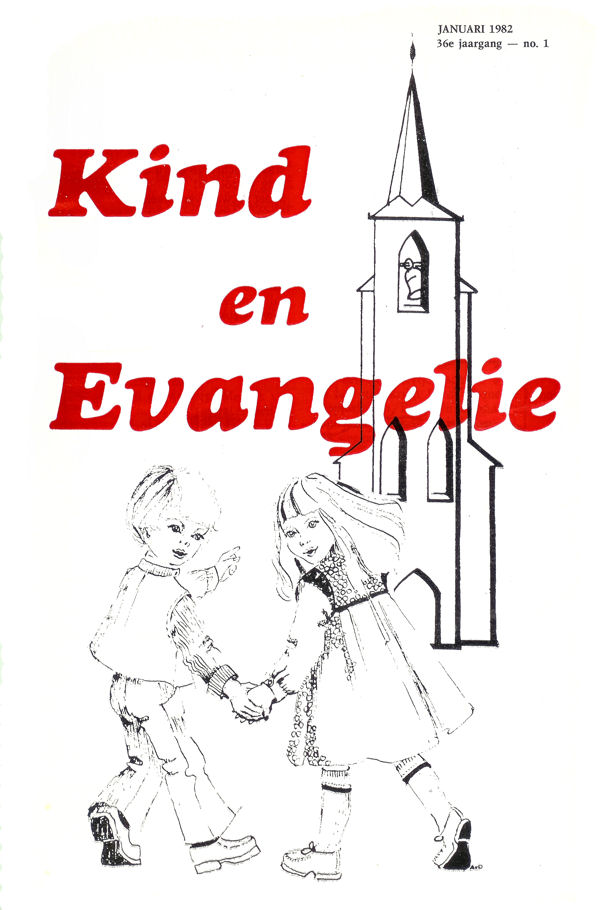 en de eerste bladzijde uit Kind en Evangelie, jaargang 1982. Het jeugdblad heeft een duidelijke ontwikkeling doorgemaakt.