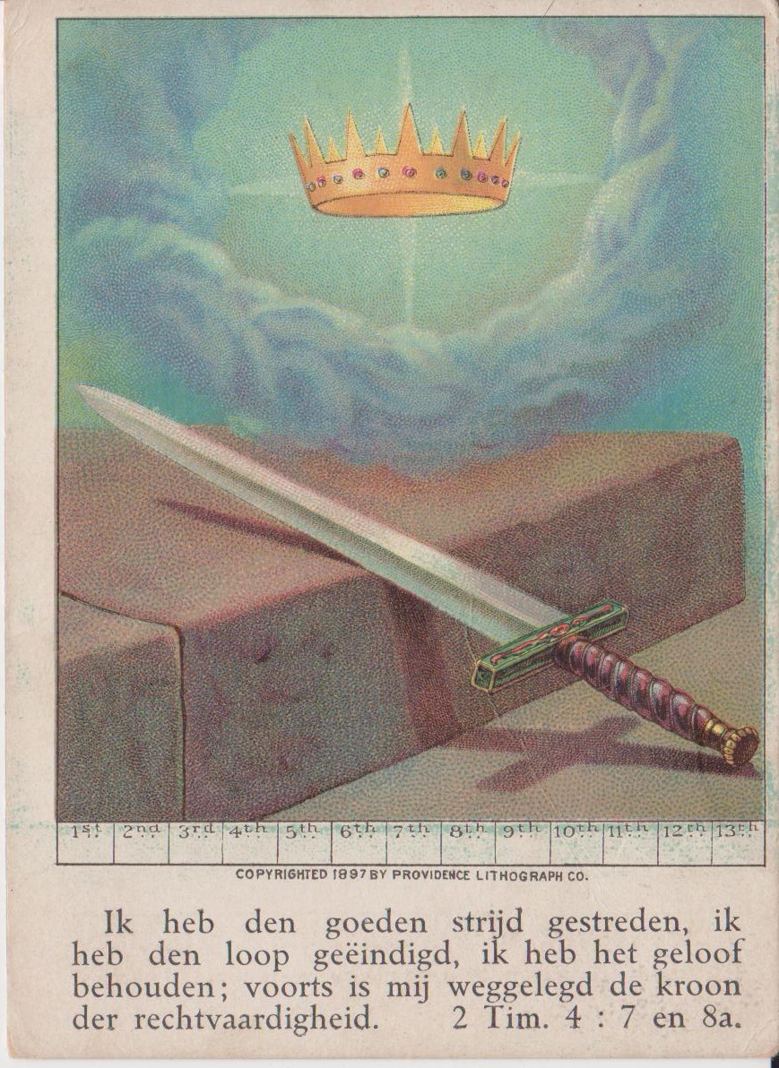 Deze verzameling bevat plaatjes van o.a. Bredee in Rotterdam, de Bijbel Kiosk Vereniging, Meinema en Callenbach. Ze is nog lang niet volledig en moet nog verder compleet gemaakt worden. Graag ontvangen wij opmerkingen over jaartallen en als u ze kent ook de uitgever van verschillende plaatjes. Er is veel nog onbekend.