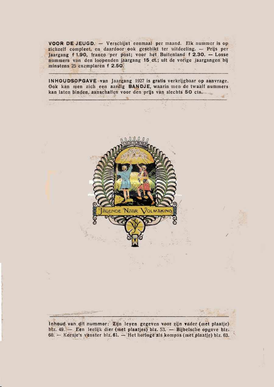 In 1926 verscheen jaargang 1 van het tijdschrift "Voor de Jeugd", uitgegeven door J.N. Voorhoeve te Den Haag. Het blad is de voortzetting van "Voor de lieve kleinen¨.